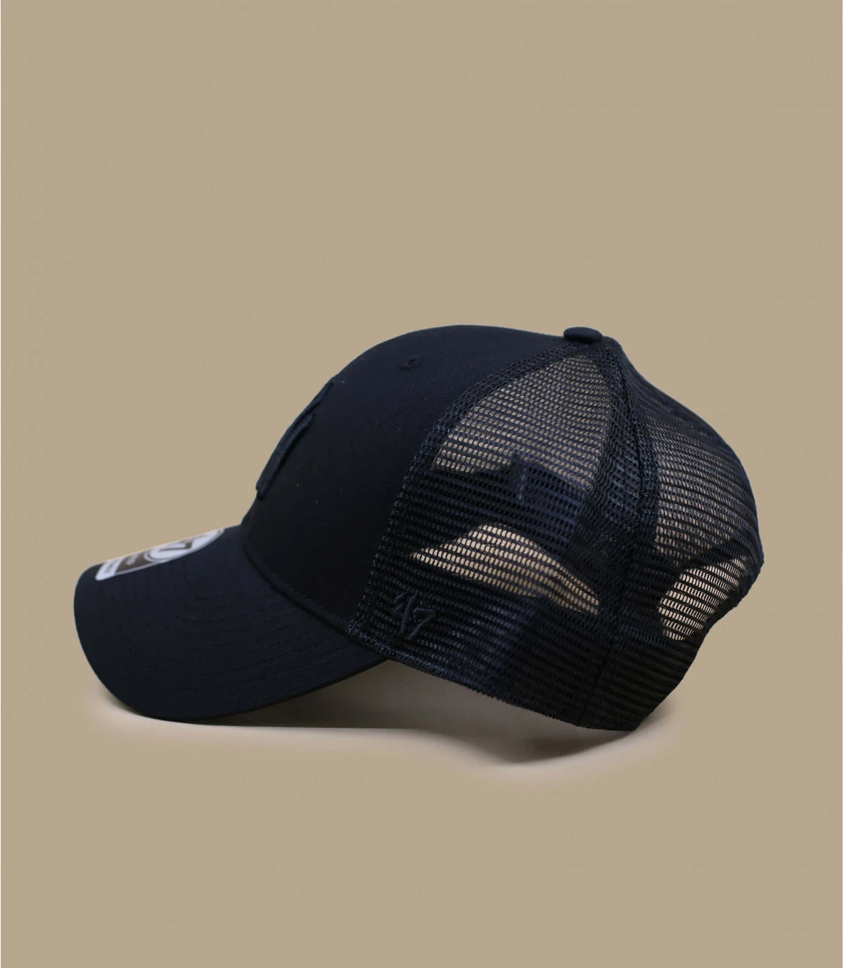 Une casquette NY fraîche et discrète en noir intégral, brodée ton sur ton des initiales de l’équipe de baseball. Ce modèle de trucker sobre nous est proposé par le spécialiste américain du headwear sportif 47′.