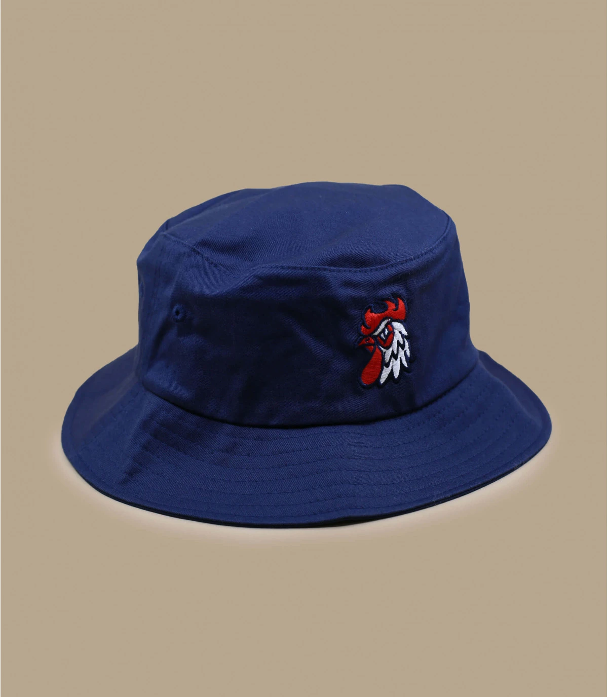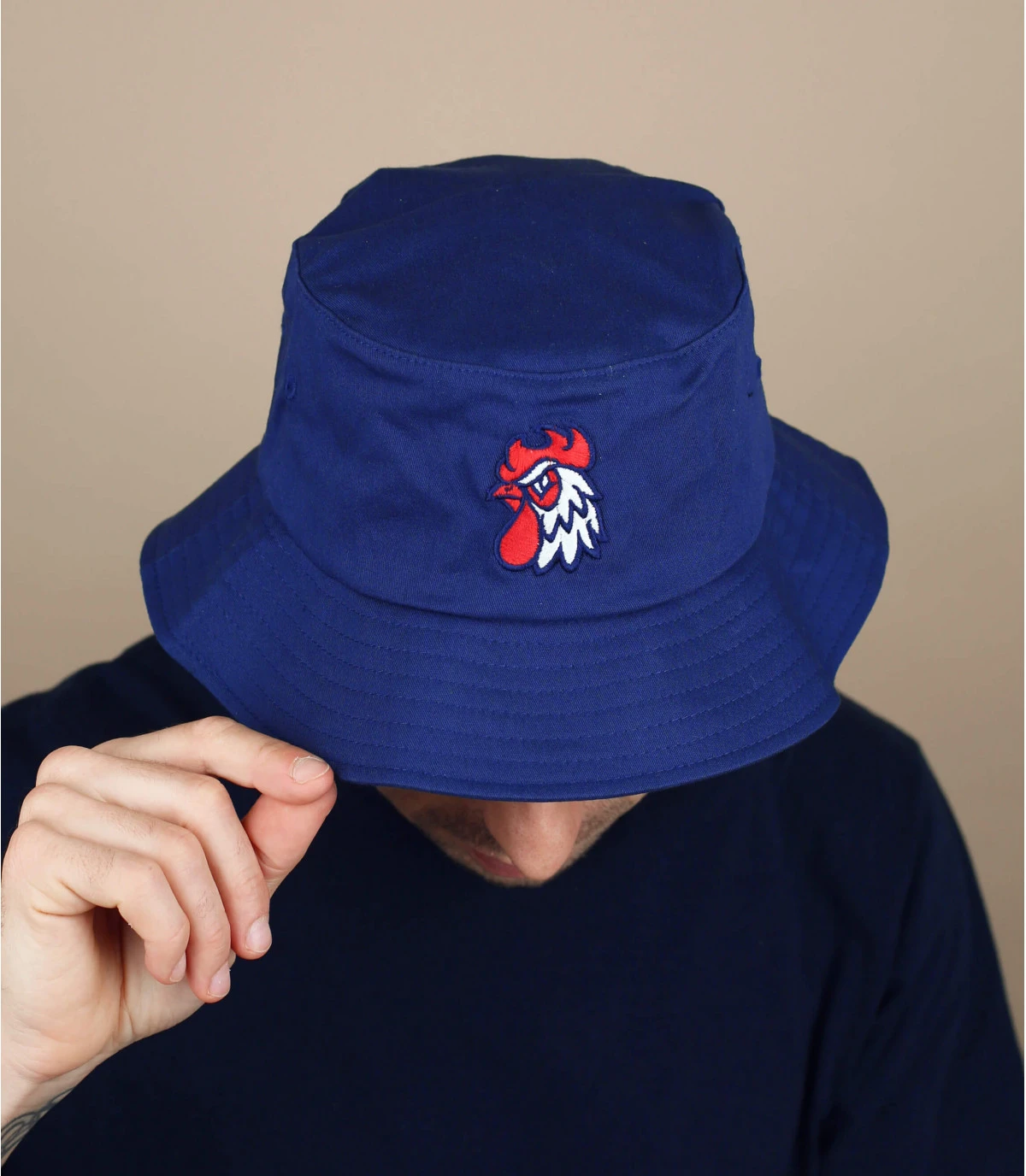 Bob bleu marine brodé devant d’un logo de coq à l’air peu commode… Le modèle parfait pour afficher votre caractère, à moins que ce ne soit votre sens de l’humour… Une exclusivité au charme frenchy, proposée par Headict.