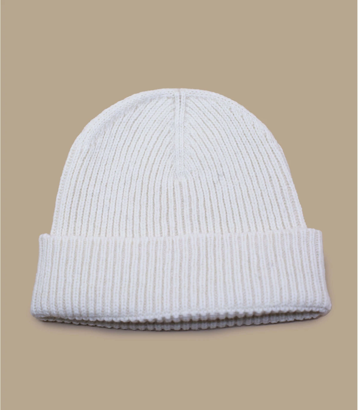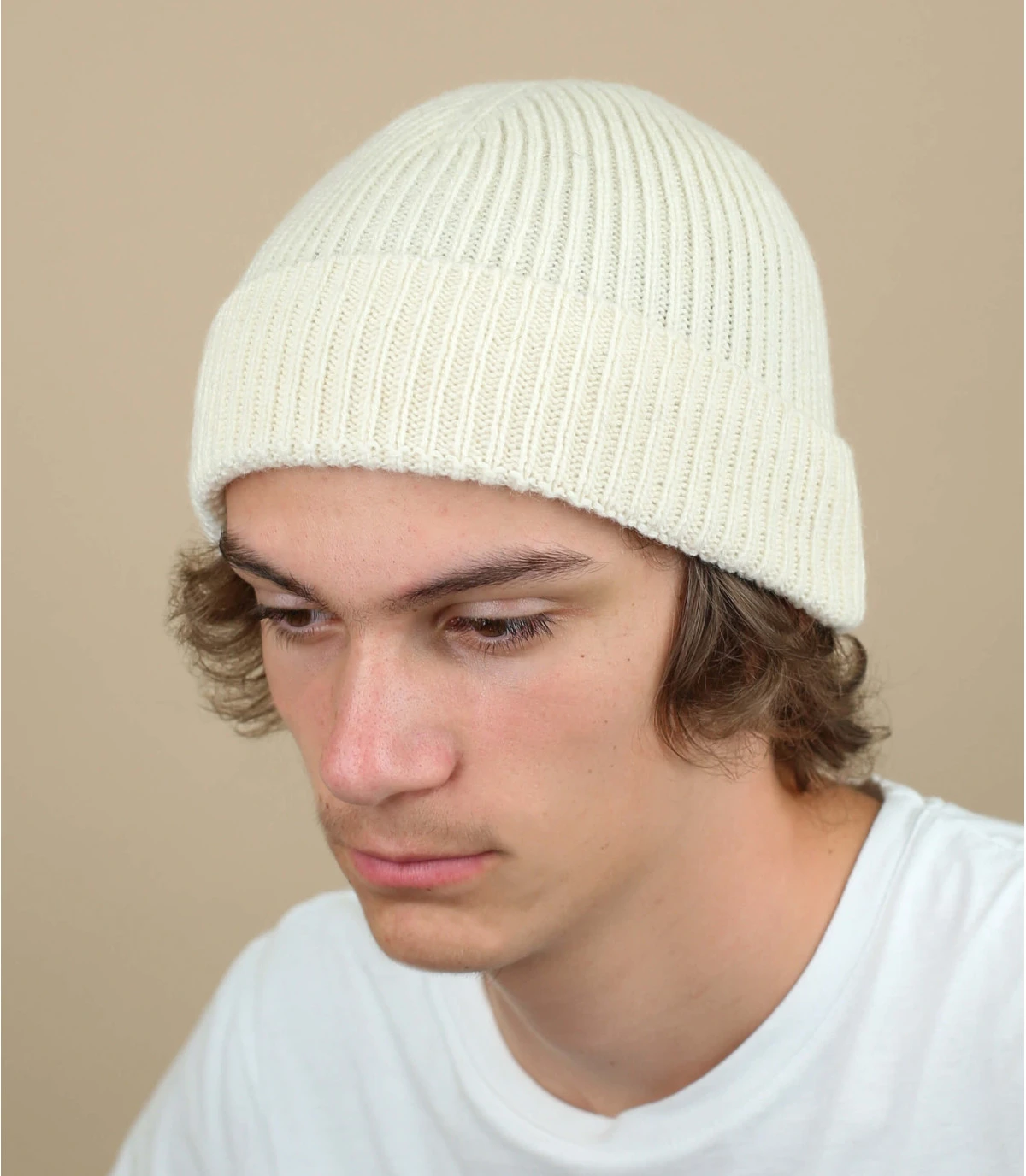 Bonnet en laine recyclée fabriqué en France de couleur ecru. Taille unique : 55-60 cm de tour dre tête.