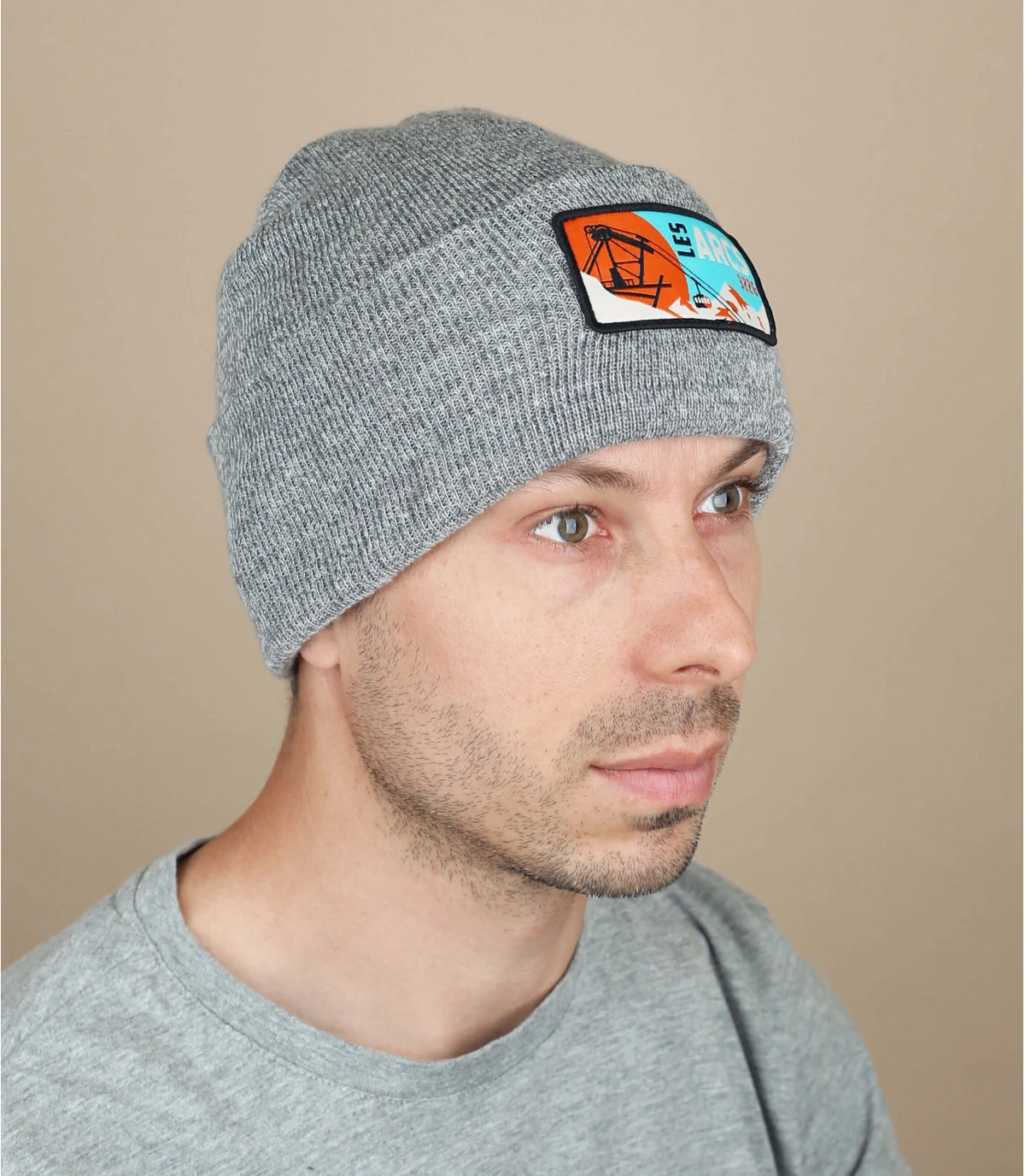 Bonnet gris clair réalisé dans une matière fine et douce, relevé sur le revers d’un patch au style rétro, à l’effigie de la station de ski des Arcs. Dessiné exclusivement pour Headict, il est destiné à tous les mordus de la station.
