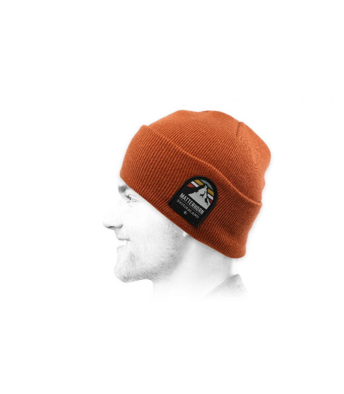 Dans une lumineuse couleur rouille, ce bonnet d’inspiration outdoor est relevé d’un superbe patch à l’effigie du Matterhorn. L’emblématique mont pyramidal est le symbole des Alpes et une destination rêvée pour les alpinistes du monde entier.
