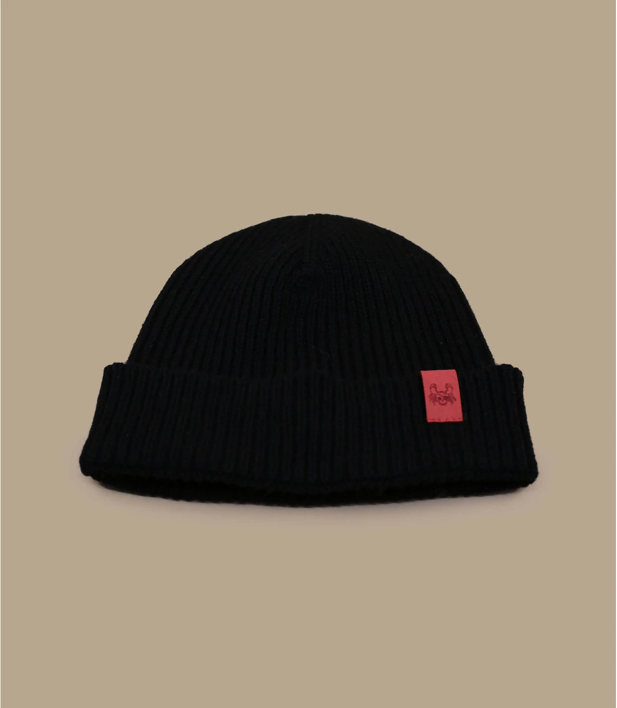 Bonnet en laine fabriqué en France dans la région Rhone Alpes et personnalisé dans notre Atelier d’Annecy, à partir de matières recyclées. Crabe pirate gravé sur patch rouge.
