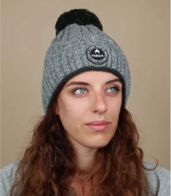 Ce ravissant bonnet gris à torsades de la marque française Cabaïa nous plait tout particulièrement parce qu’il est livré avec trois pompons, interchangeables grâce à un système d’aimant puissant. En un clin d’œil, passez du gris au noir ou au blanc selon votre humeur et votre tenue !