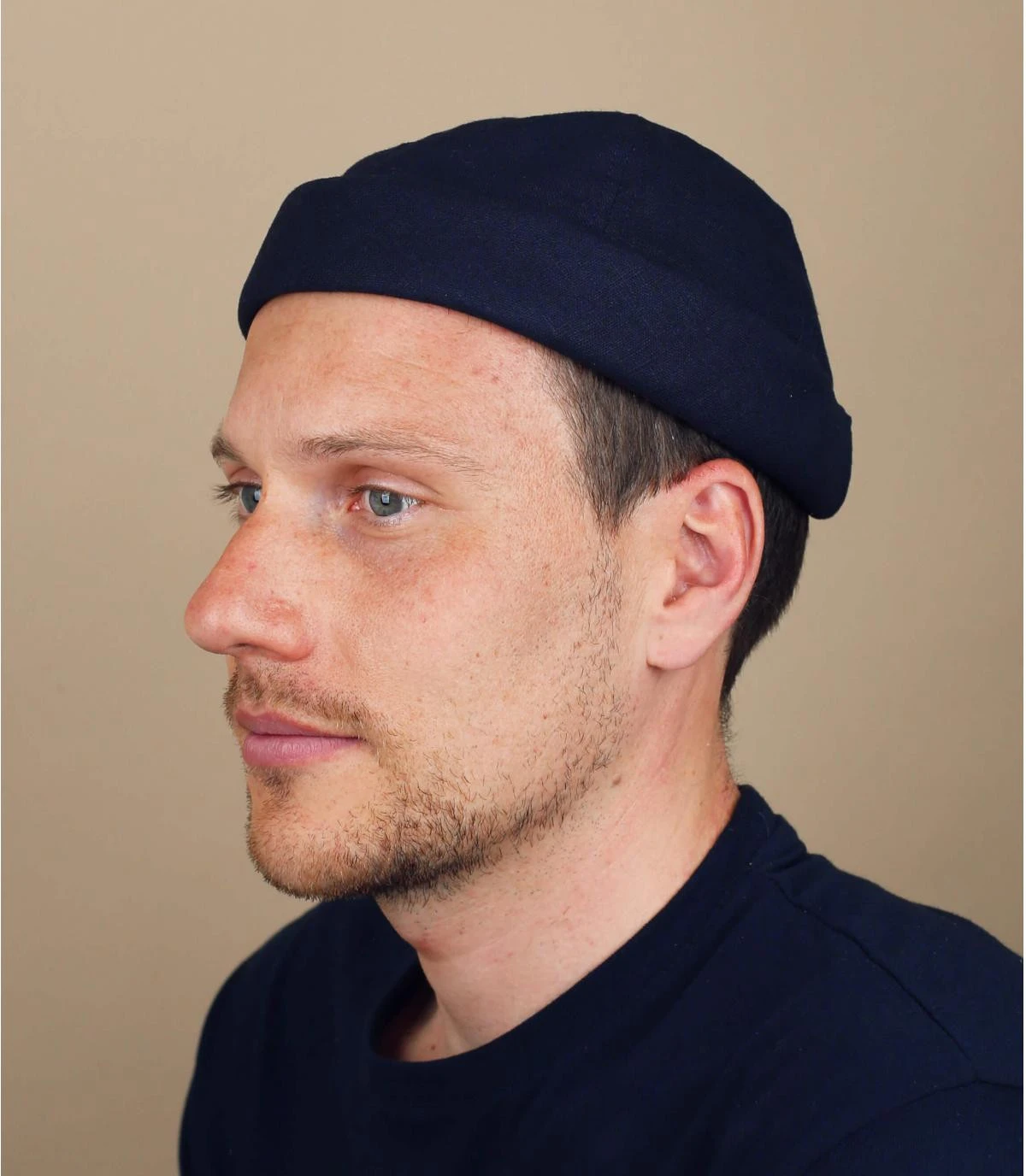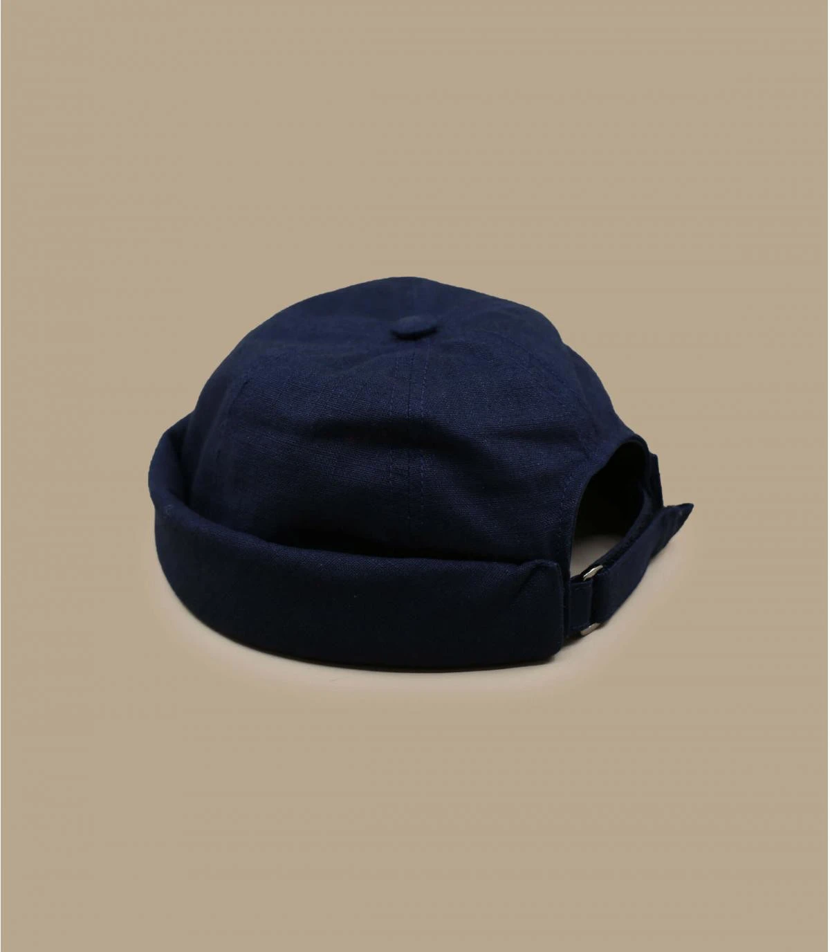 Adoptez le style nautique moderne, avec ce bonnet docker bleu marine composé de lin résistant, frais et léger. Très agréable à porter, il s’ajuste au dos grâce à une bande de tissu assortie avec une fermeture velcro.