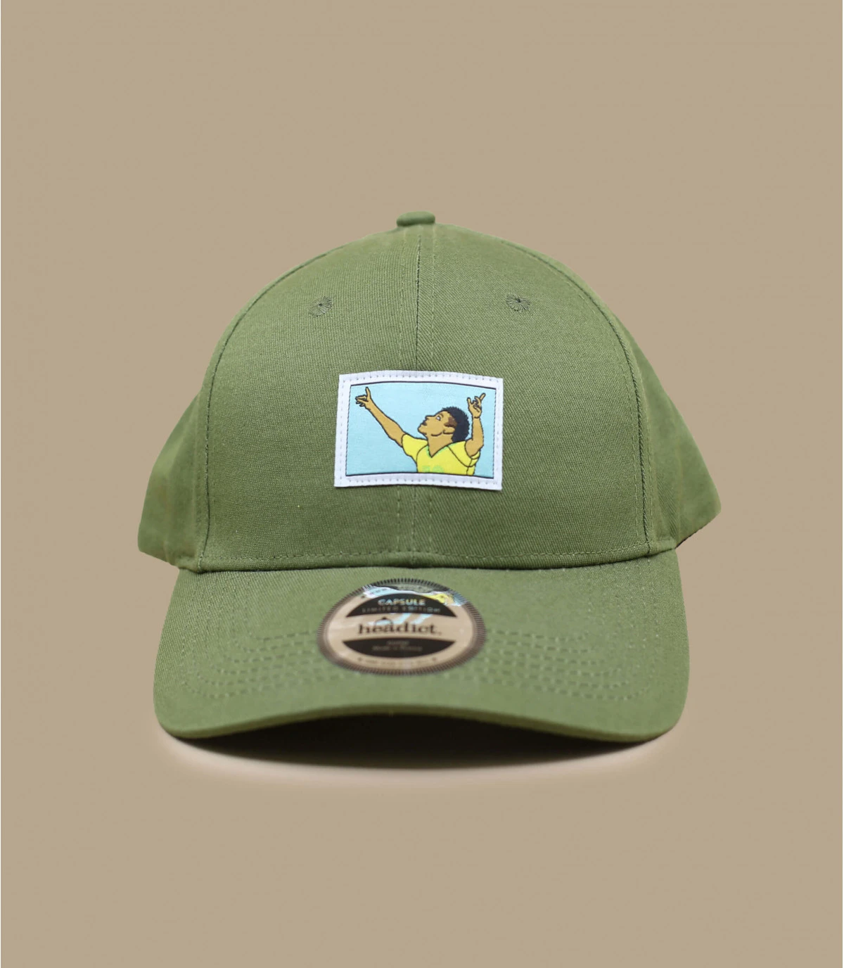 Qu’on soit une superstar brésilienne du foot ou pas, qu’on joue pour le Barça ou à Paris, c’est toujours la même émotion lorsqu’on marque un but, la même posture de victoire les bras au ciel. Casquette vert olive à visière courbée, décorée d’un patch tissé en exclusivité pour Headict.
