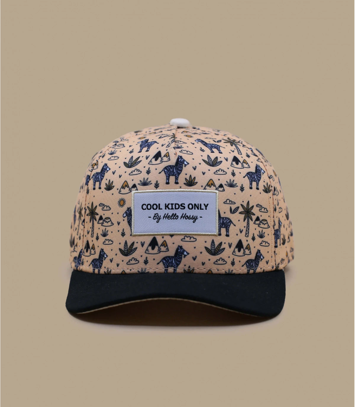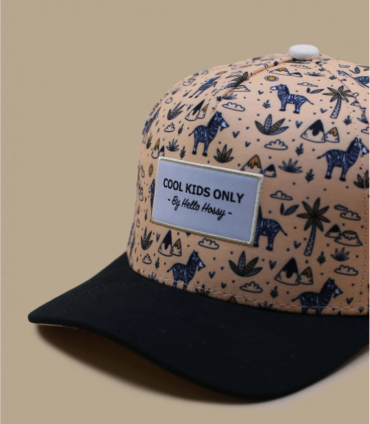 Avec cette casquette exotique, votre chérubin sera à l’abri des rayons du soleil et aura beaucoup de style. Faite à partir de matériaux recyclés, elle est beige et porte des motifs exotiques représentant la Tanzanie comme un zèbre et des palmiers.