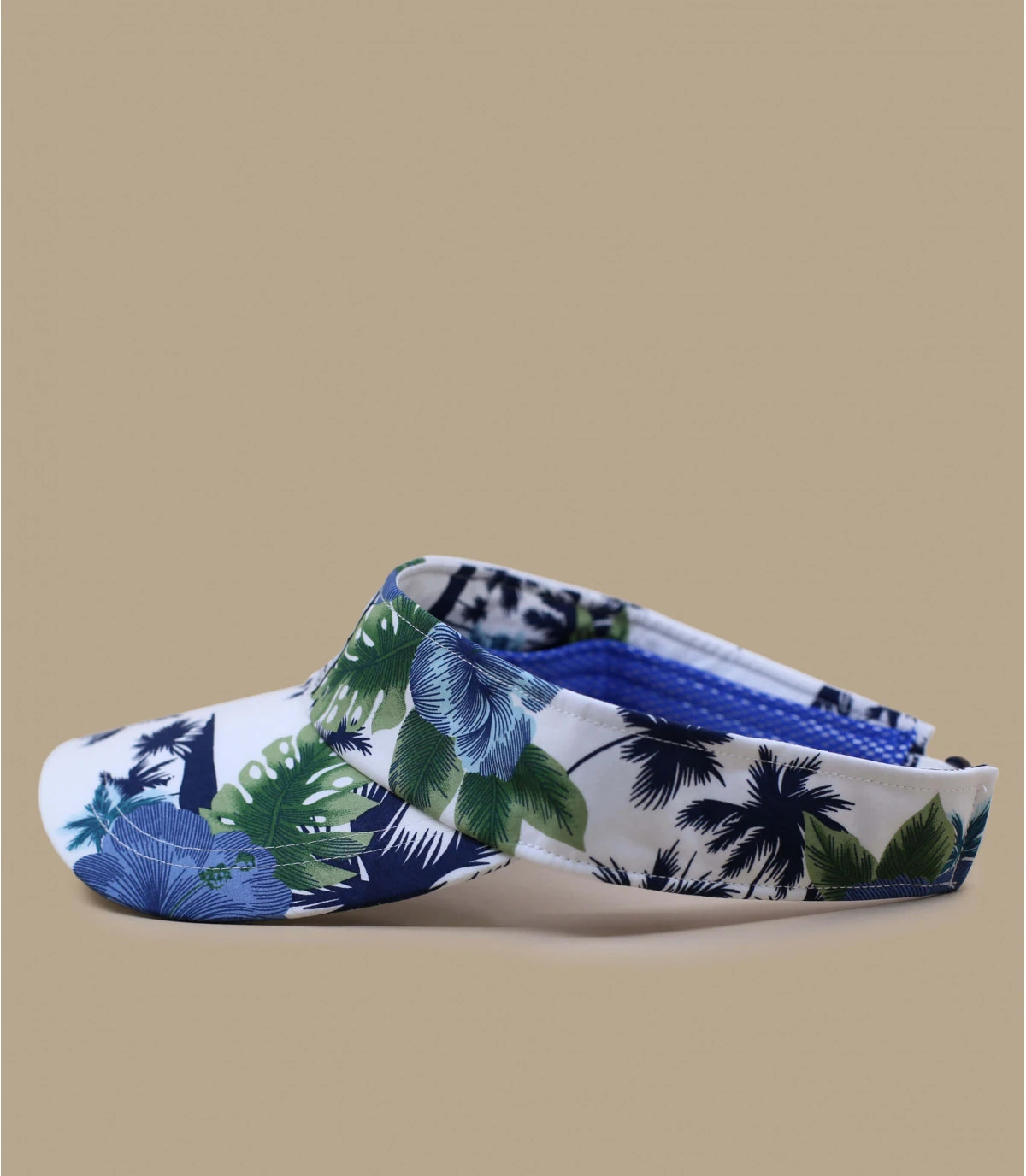 Restez à l’ombre en portant cette visière blanche stylée qui vous protège du soleil ! Son motif de palmiers exotique est frais et vous fera voyager instantanément vers un pays chaud. 100 % coton, elle est confortable à porter et légère.