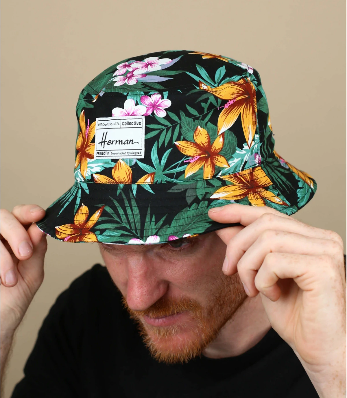 Le bob cet été sera tendance et très coloré ! Celui-ci est 100 % coton et porte un motif jungle très frais. Un patch avant porte le nom de la marque.