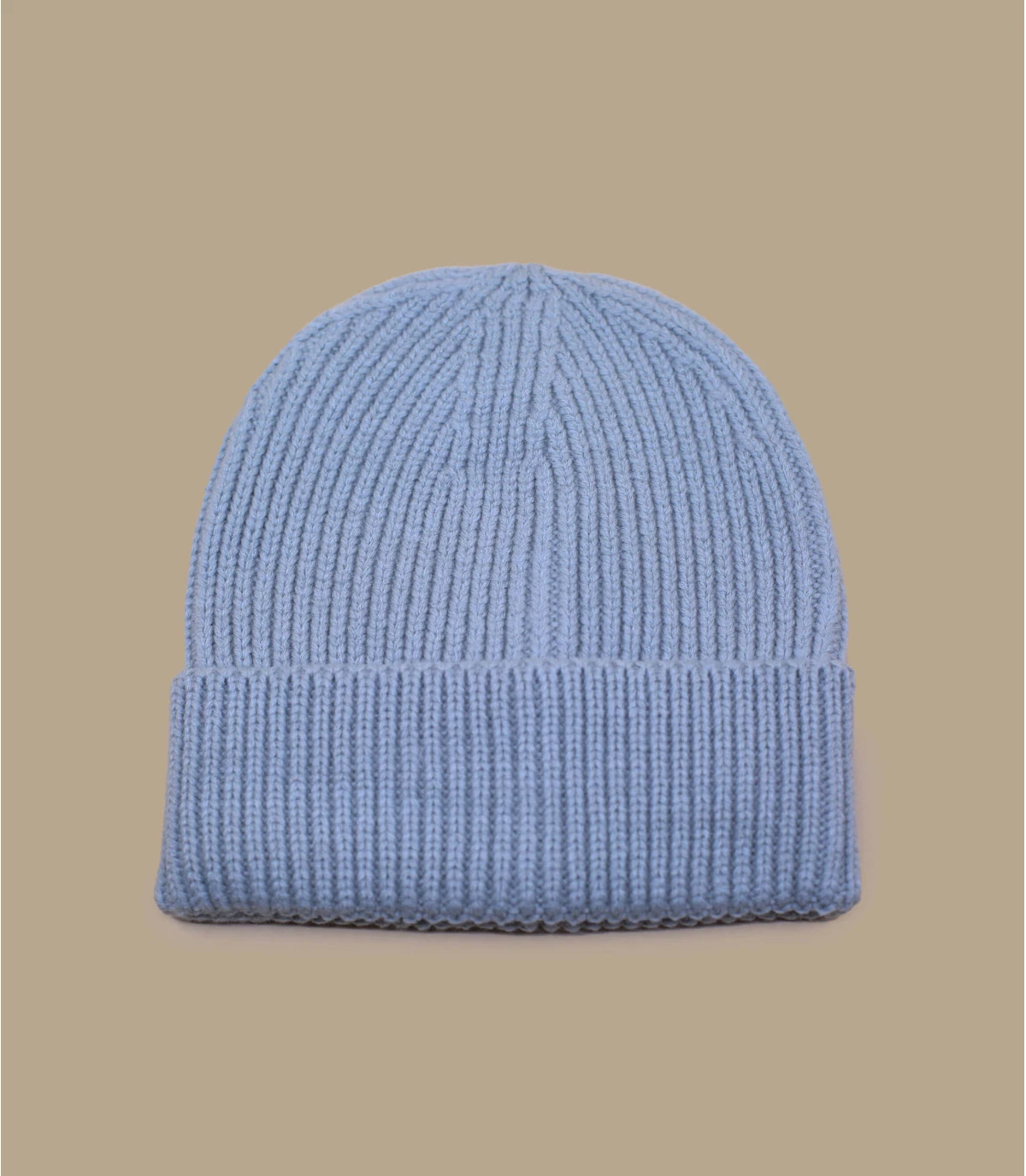 Bonnet revers en maille acrylique de couleur gris. Taille unique : 55-60 cm de tour de tête.