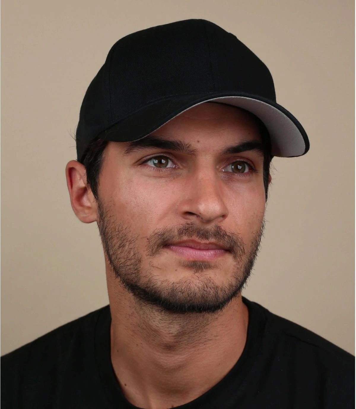 Casquette visière courbée noire. Dessous de visière gris. Sangle de réglage à l’arrière. Tour de tête 55-60 cm.