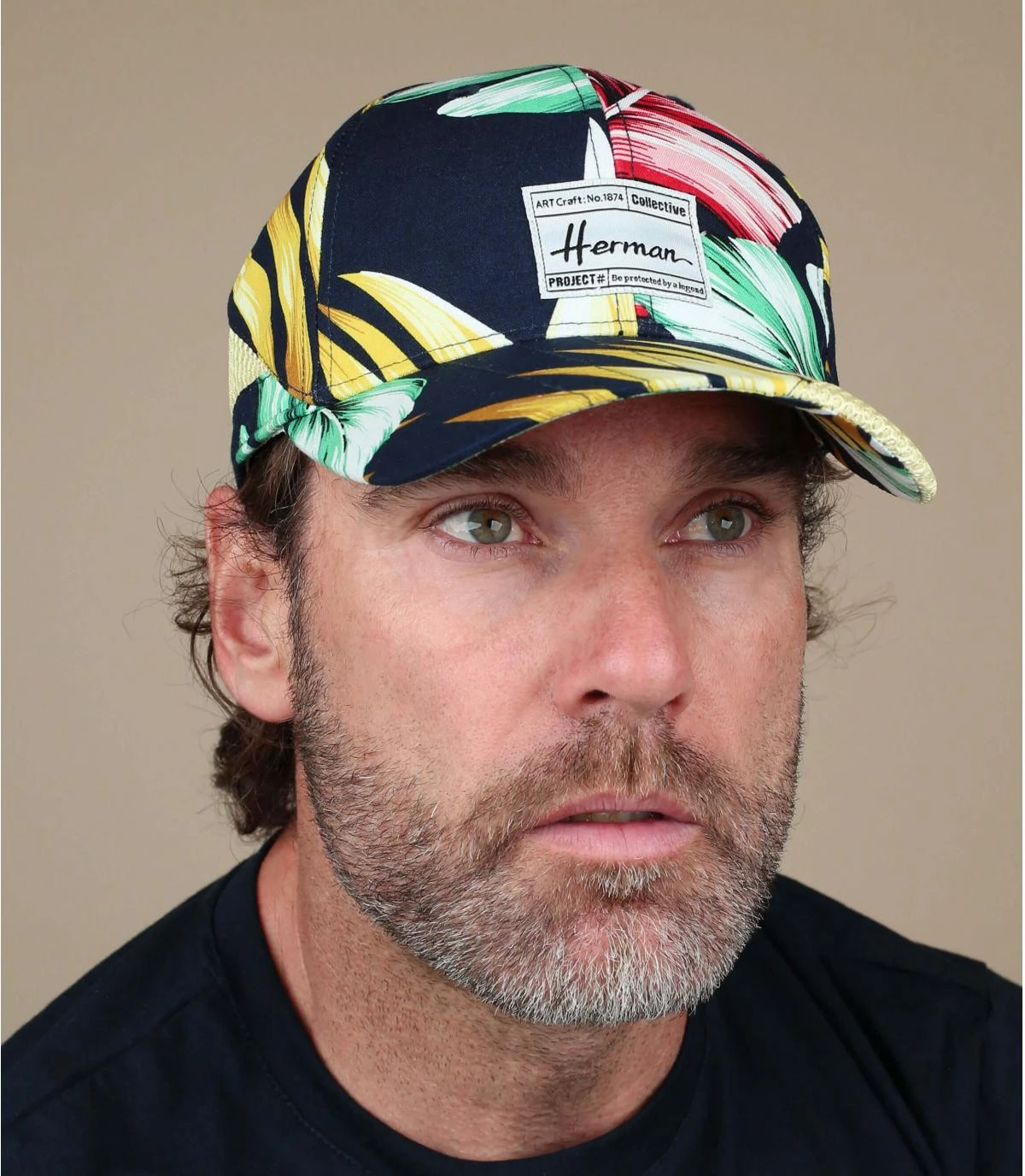 Attention, modèle unique ! Cette magnifique casquette à imprimé tropical que nous propose le spécialiste Herman combine la toile de coton avec des empiècements en mesh pour un style sport dymanique et une respirabilité accrue.