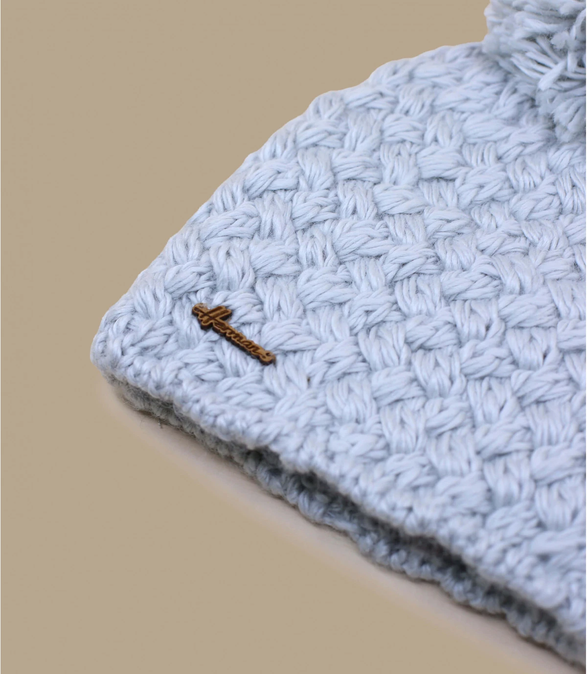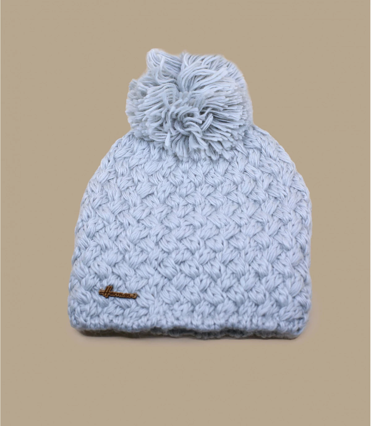 Une couleur gris perle lumineuse et raffinée fait de ce modèle en laine mélangée chaude et douce un bonnet élégant en toute simplicité. Le point fantaisie tricoté main est rehaussé d’un ravissant pompon assorti.
