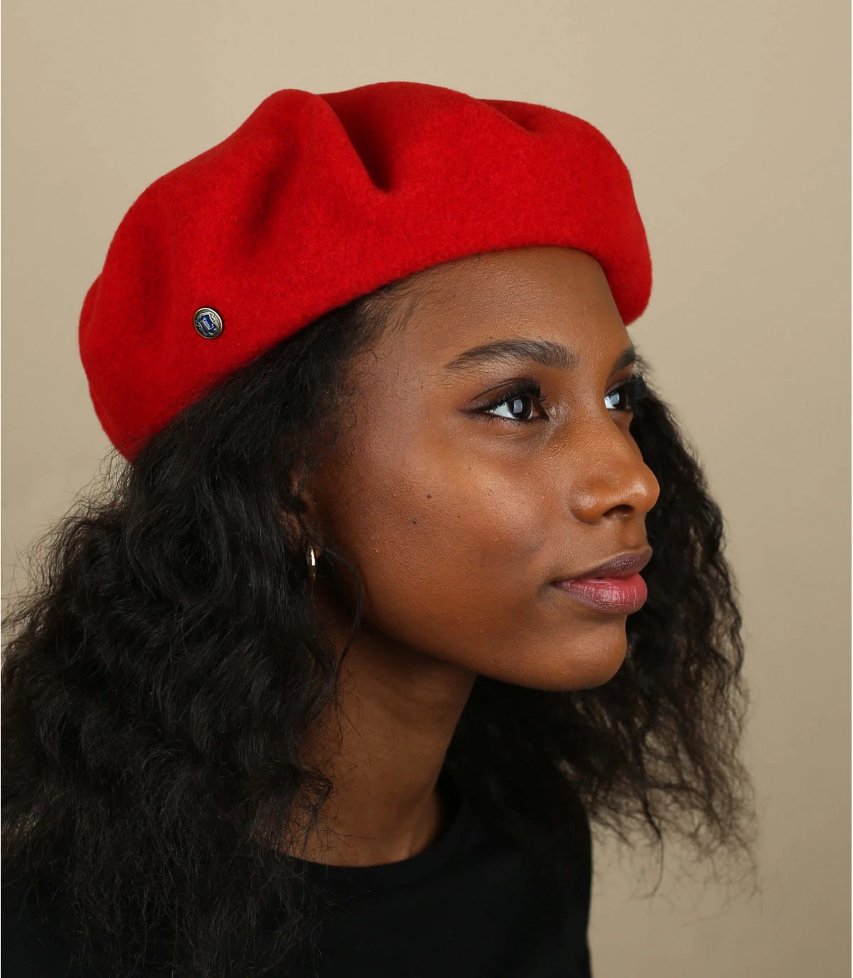 D’un beau rouge profond, ce béret en cachemire confectionné en France par la marque traditionnelle Laulhère fera tourner les têtes sur votre passage. Les fibres naturelles extrêmement douces de sa matière apportent une chaleur appréciable par temps froid.