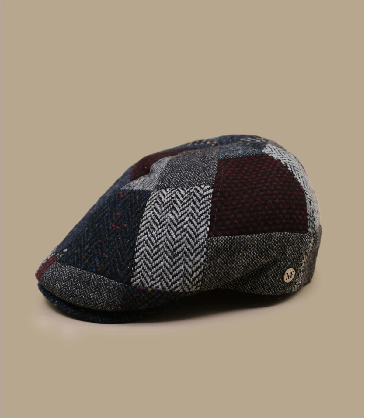 Ce béret très vivant au motif unique mettra de la bonne humeur dans votre tenue. Il montre un patchwork original bleu et gris. Fait en laine, il est idéal pour vous tenir au chaud les journées ou soirées d’hiver.