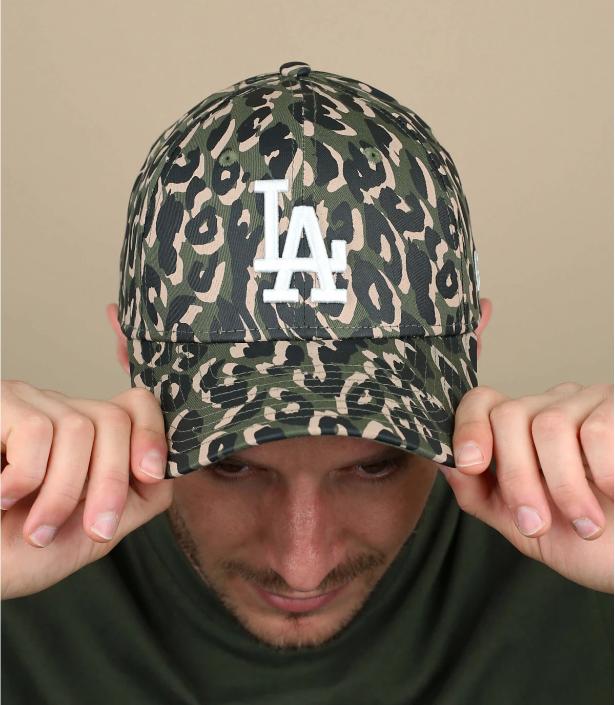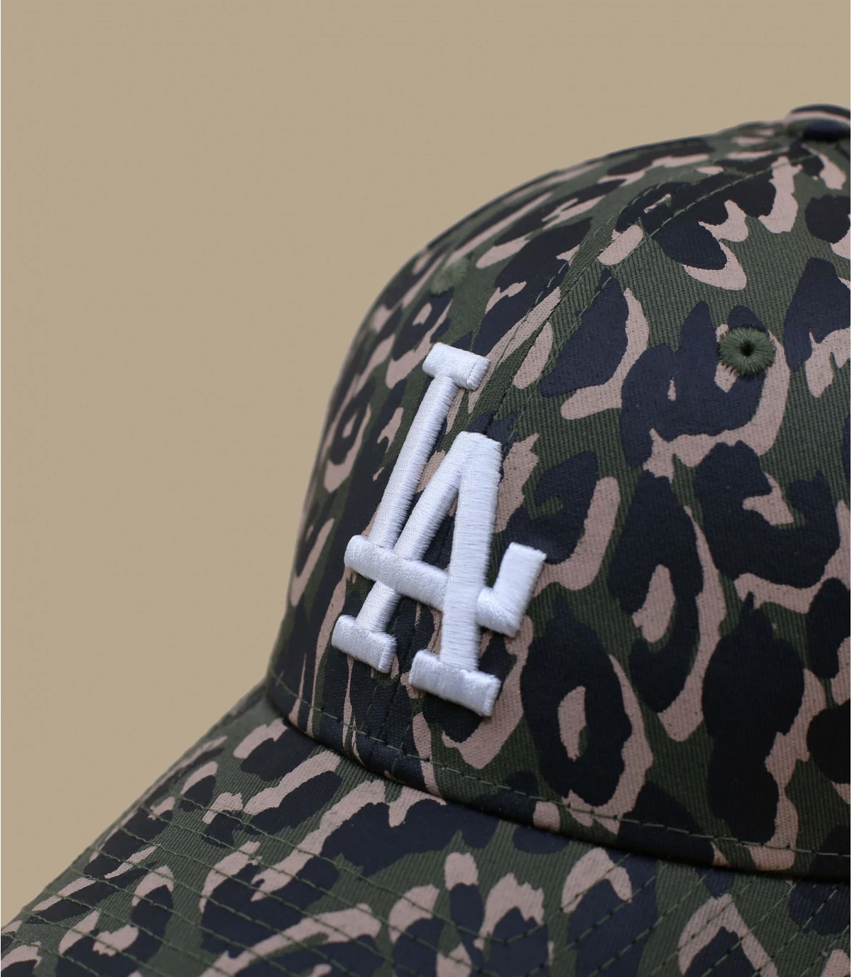 Les initiales LA de l’équipe des Dodgers sont brodées sur cette casquette noire avec un imprimé camouflage olive original. La franchise a été créée à l’origine à Brooklyn en 1883 puis déménagea en Californie.