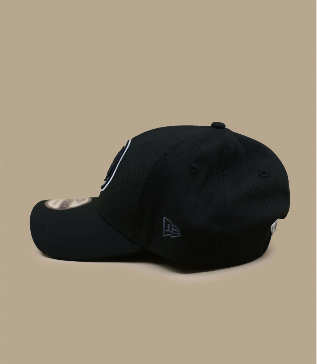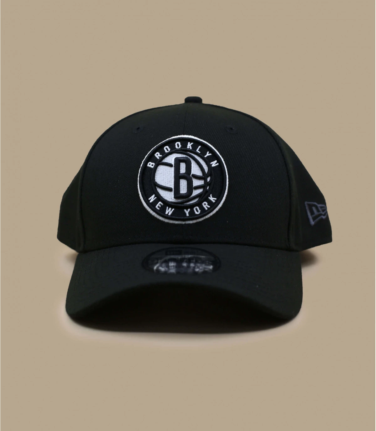 Une casquette de l’équipe de basketball des Nets de Brooklyn, où le logo ressort sur le fond noir du modèle à visière courbée. Une réalisation de l’emblématique marque américaine New Era.