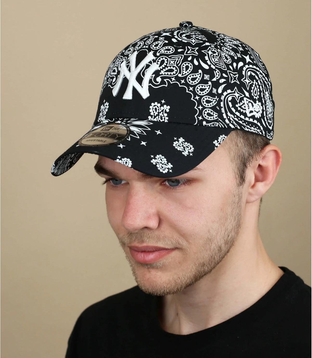 Distinguez vous de la masse avec cette casquette recouverte d’un imprimé bandana noir et blanc. Elle porte les initiales NY reconnues dans le monde entier, en référence à l’équipe des Yankees.