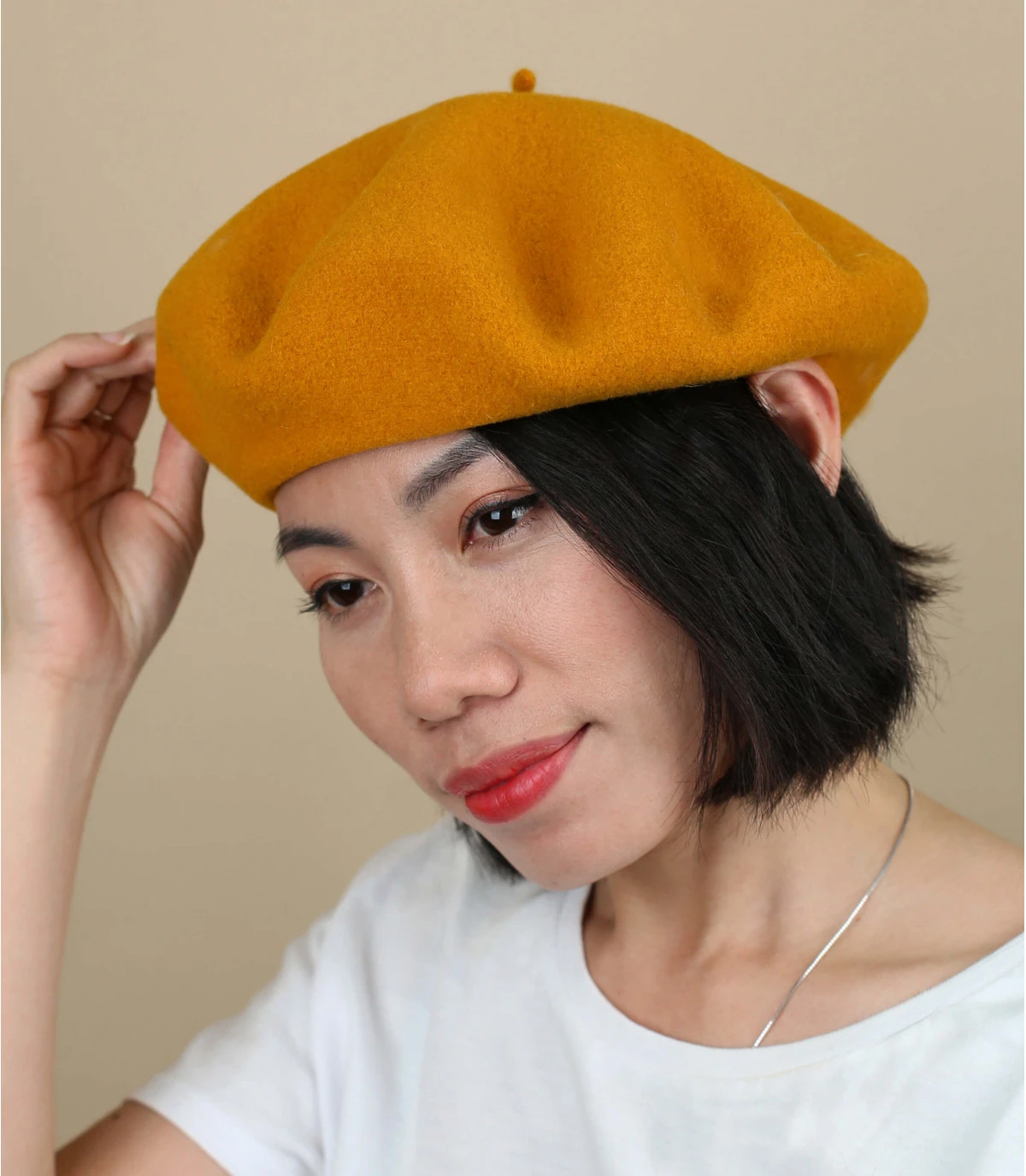 À prix tout doux comme sa matière en pure laine vierge mérinos, ce magnifique béret Laulhère vous emboite souplement la tête et vous donne cette touche glamour vintage que vous recherchez. Ce modèle au toucher velouté est proposé ici en safran chic.