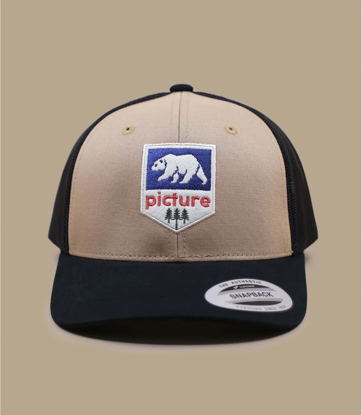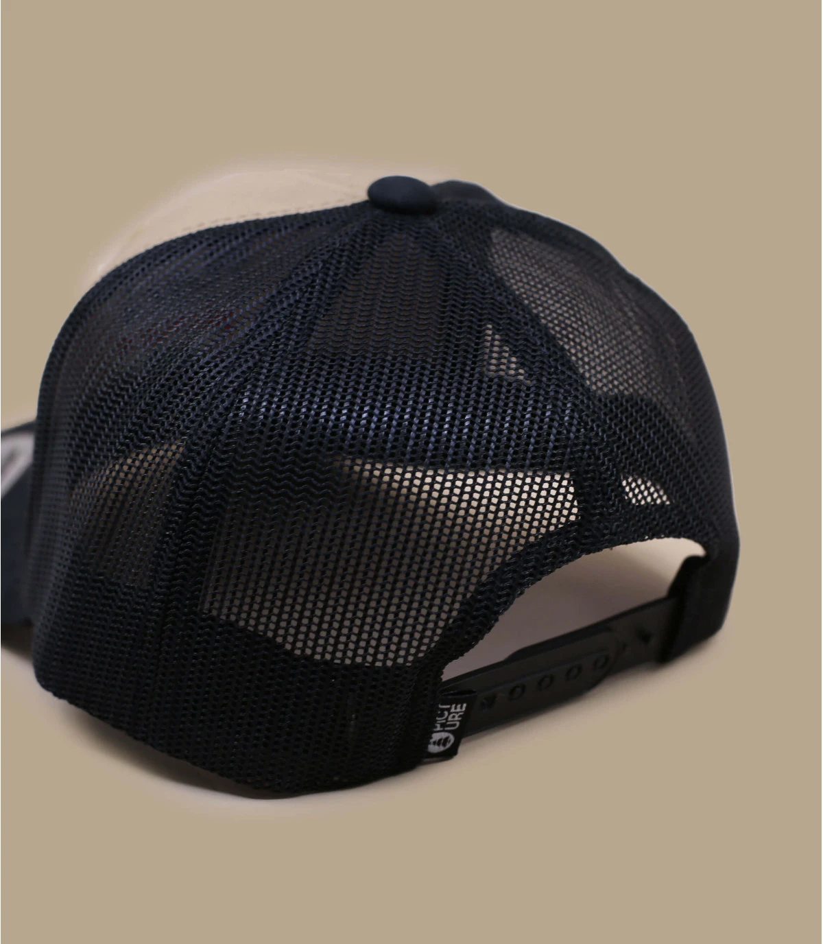Votre enfant pourra porter cette élégante casquette trucker beige à l’avant avec une visière et un filet arrière noir en plein air. Elle est faite en coton recyclé, pour une fabrication durable et un impact limité sur l’environnement.