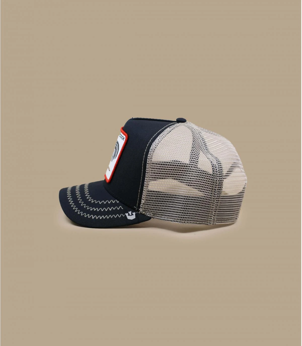 Casquette trucker avec un beau coq à l’avant et un filet à l’arrière. Goorin Bros, cette marque célèbre pour sa casquette animaux propose ici le modèle avec un coq.