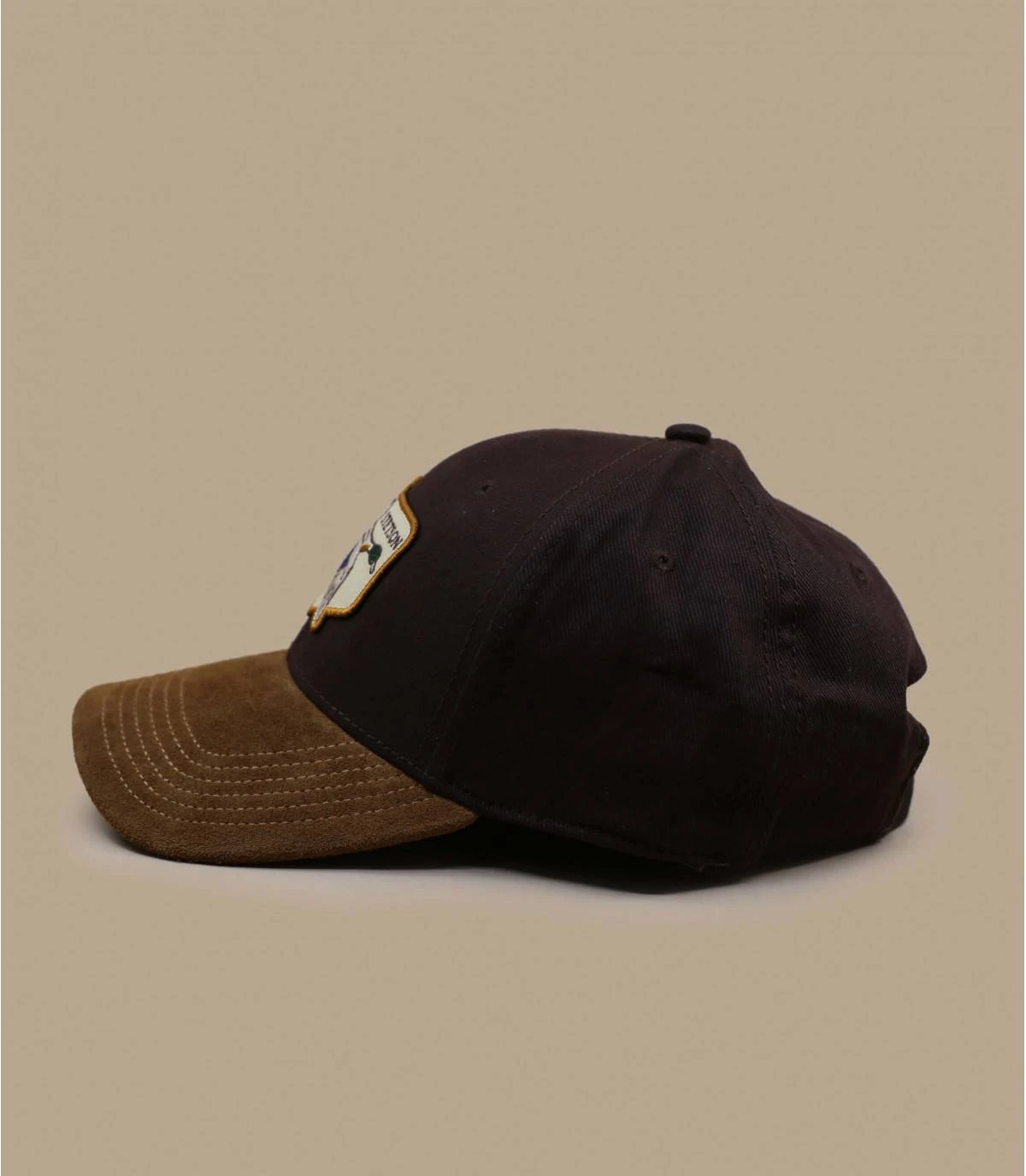 Relevée d’un canard en plein vol qui plaira aux amateurs d’aventures en plein air, cette magnifique casquette Stetson marron est entièrement doublée de coton confortable.