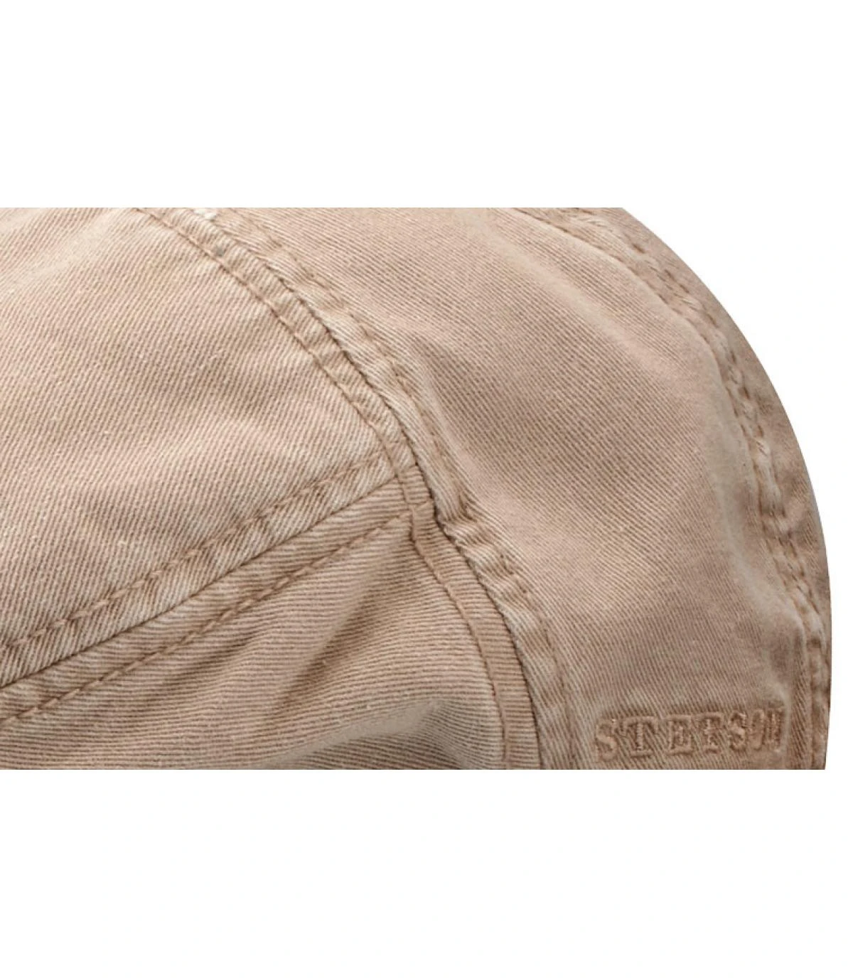 Béret Paradise avec visière cousue sur l’avant. Béret de couleur beige avec large pan vertical sur l’avant et broderie Stetson sur le côté gauche. Protection anti UV UPF+40.