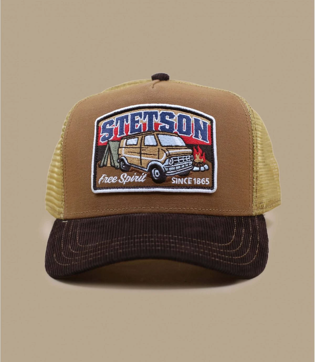 Partez à l’aventure en van et protégez-vous du soleil à tout instant, avec cette splendide casquette trucker marron de la marque Stetson, décorée d’un grand patch brodé.