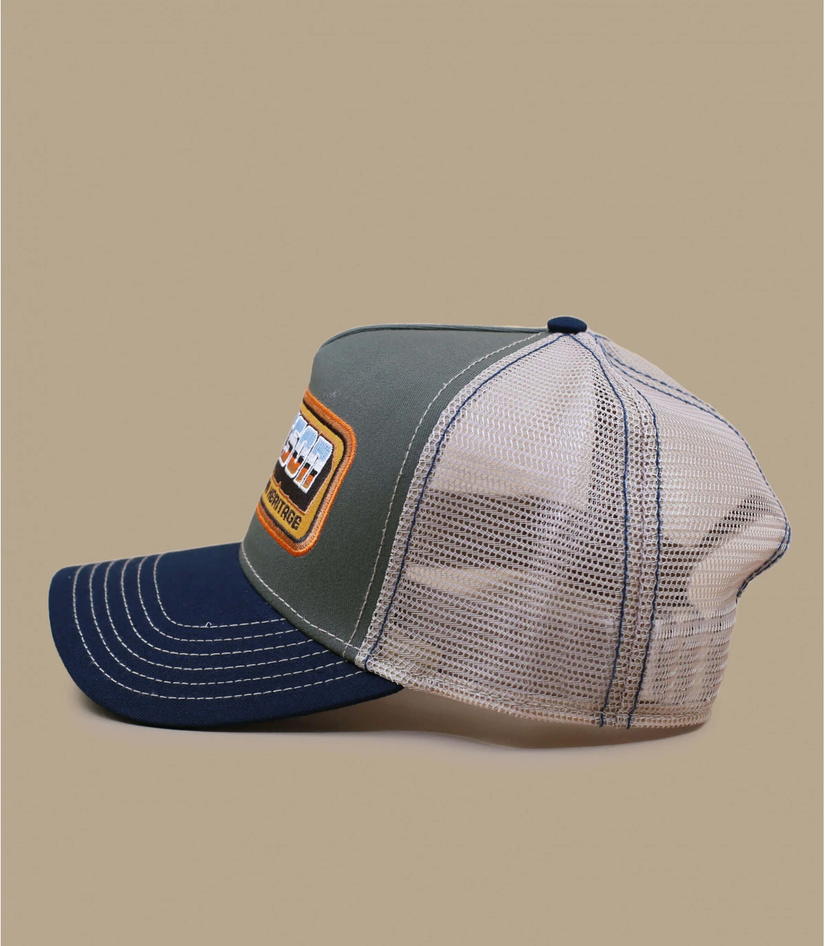Faites le show avec la casquette trucker Chrome qui rappelle la passion des vieilles voitures rutilantes. Sa visière est bleue, l’avant est vert gris, et le filet arrière blanc. Le patch avant vintage montre le nom de la marque.