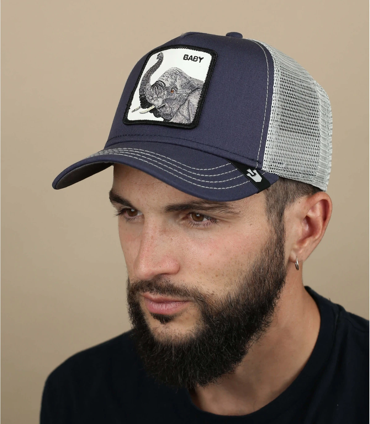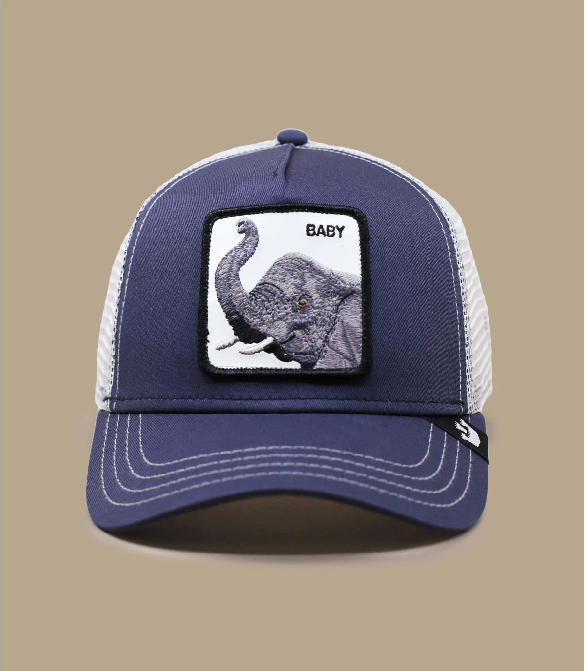 Soyez l’ami des bêtes en portant cette casquette trucker originale cet été. Son coloris est bleu marine à l’avant et son filet arrière est blanc. Un patch carré montre un bébé éléphant avec le mot “baby”.