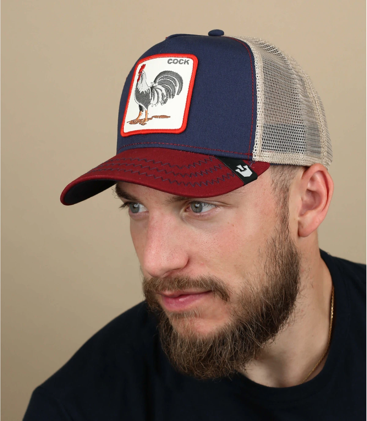 Le best-seller de la marque américaine Goorin Bros est de retour avec ce modèle marine décoré devant d’un superbe patch brodé avec un coq multicolore. Affichez fièrement cette magnifique casquette trucker et bénéficiez du confort de sa bande en coton sur le pourtour intérieur et de la fraîcheur de son dos en mesh.