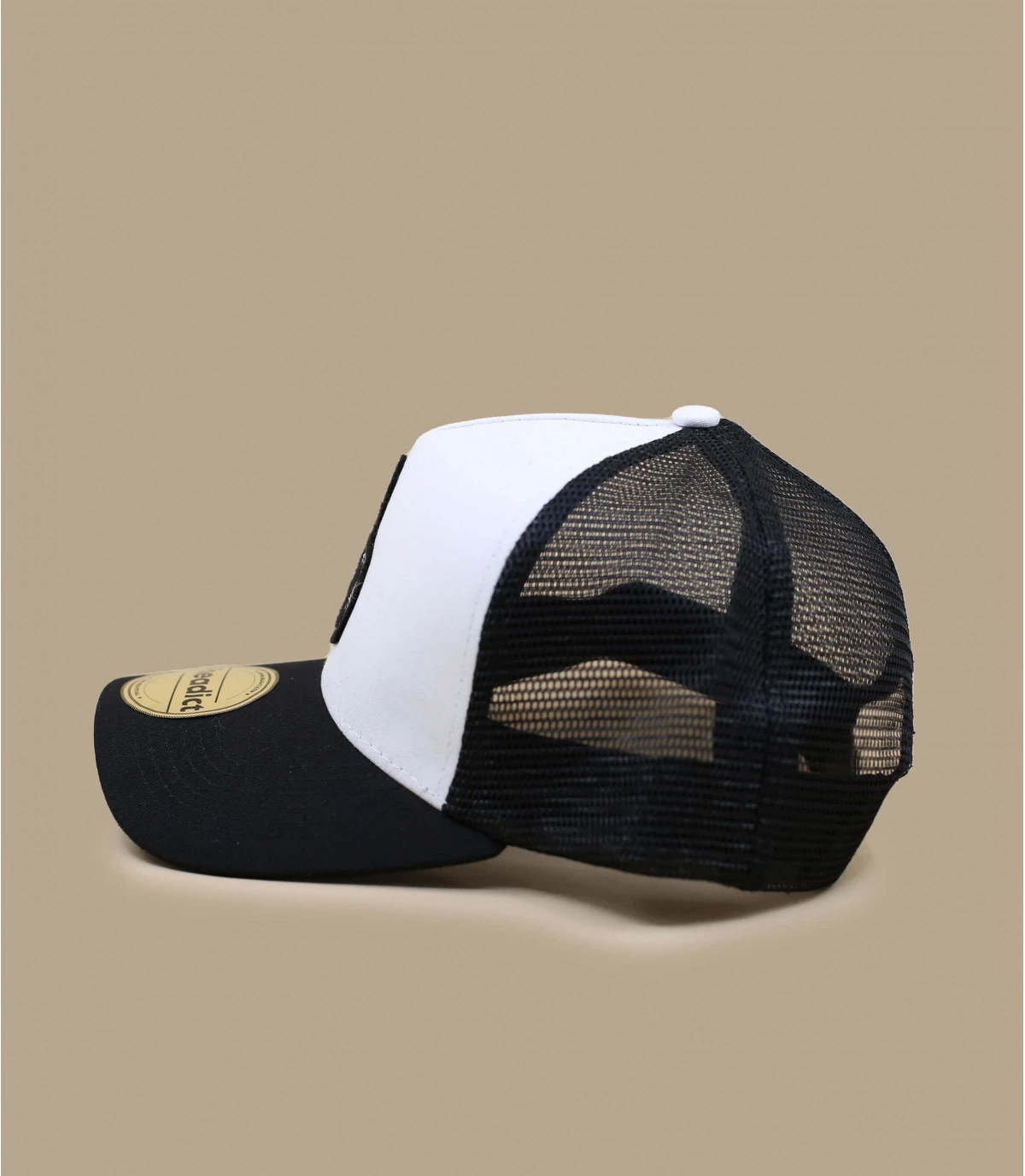 Légère et ventilée, cette casquette trucker noire et blanche n’en est pas moins lourde de sens, grâce à son logo en feutrine noire apposé sur l’avant. Montrez au monde que vous ne vous laissez pas impressionner, avec ce modèle exclusif Headict.