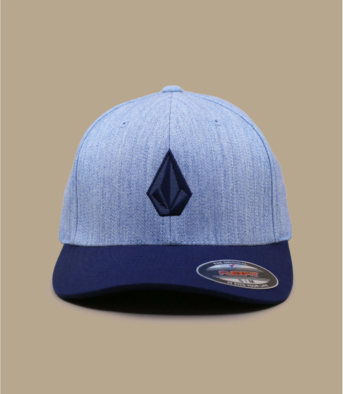La technologie Flexfit rend cette casquette plus élastique et confortable. Elle présente 2 couleurs : sa visière est bleu marine et le reste de la casquette grise. Sur l’avant, on peut voir le logo de pierre bleu et noir, le symbole de Volcom.